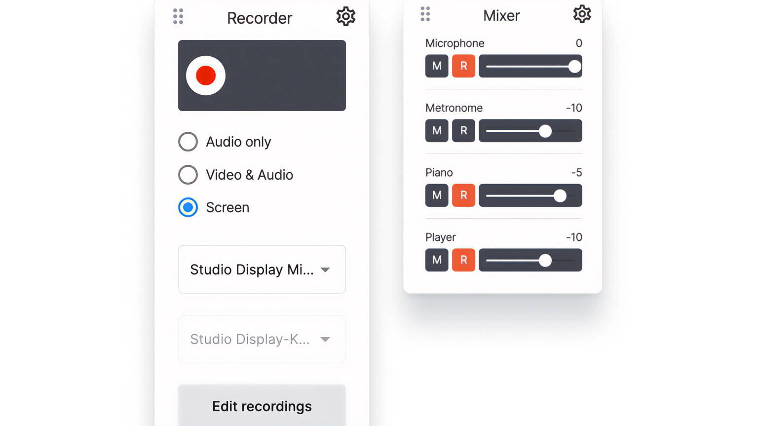 - Funzionalità di Registrazione Estesa: (Fig.4) Il sistema di registrazione è stato potenziato per includere tutti i contenuti di doozzoo, come i pianoforti virtuali, i lettori audio e i metronomi. Gli utenti hanno la possibilità di selezionare quali fonti audio registrare, offrendo una flessibilità senza precedenti nelle sessioni di registrazione.