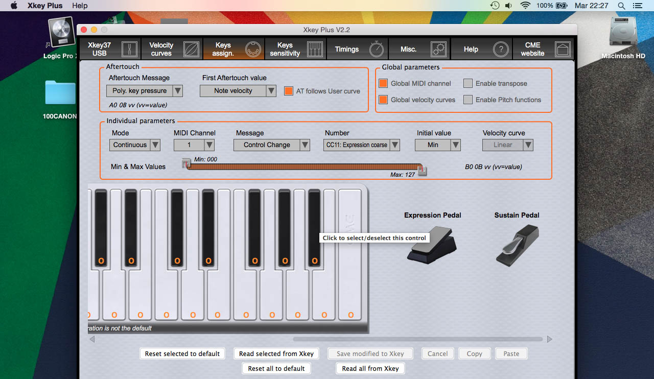 Il software IOS ha subìto un piccolo restyling che mi ha lasciato spiazzato per qualche secondo: fondamentalmente si tratta di ritocchi estetici in quanto era un software già molto completo nelle funzionalità. Ovviamente la versione di XKey viene riconosciuta dall’applicazione per mostrare a video il corretto numero di tasti su cui è possibile operare la personalizzazione. Quando collegata la XKey37, nella pagina Key assign vengono mostrati, scrollando tutto verso destra, anche i settaggi per i due pedali. Per entrambi è possibile scegliere la modalità (continuo/singolo per pedale espressione e push/switch per pedale sustain), tipo di messaggio (control change, pitch, program change) e relativo numero (Fig.4). I settaggi relativi all’uso della porta midi invece sono nella pagina misc e prevedono la possibilità di girare verso l’esterno o i messaggi midi provenienti dalla tastiera o quelli provenienti dall’host, trasformando in questo modo la XKey in una interfaccia midi out per il computer.