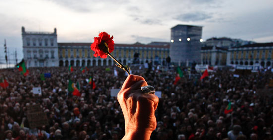 , in portoghese Revoluçao dos cravos, posti nei fucili invece dei proiettili in segno di pace e libertà. Il rosso diventa il colore dominante della rivoluzione di aprile, una coincidenza che racchiude in sé il significato del sangue e del fuoco, simboli fondamentali della vita.