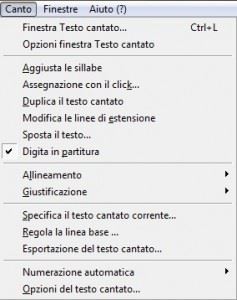 La funzione testo cantato (Fig.1) in Finale assume un’importanza straordinaria quando si tratta di realizzare con attenzione e precisione partiture che richiedano l’inserimento di un testo.