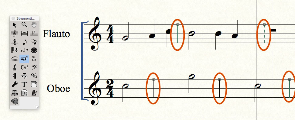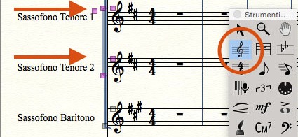 Per attivare questa funzione passate in modalità Visualizzazione lineare e quindi selezionate l’icona Strumento rigo musicale (Fig.1).