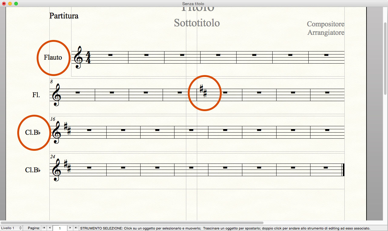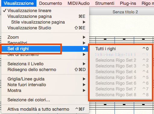 Da ora in poi potrete alternare la visualizzazione personalizzata alla visualizzazione globale della partitura. Potrete creare fino a 8 set di righi personalizzati in ciascun documento.