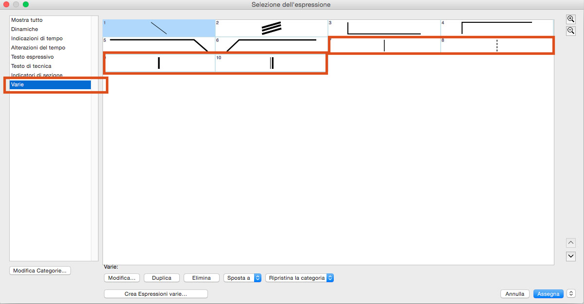 SELEZIONE DELL’ESPRESSIONE — FINESTRA “VARIE”