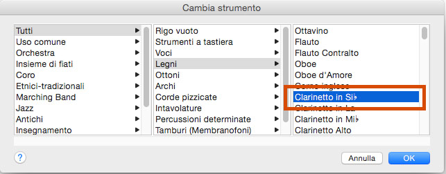 Fate la scelta nell’elenco strumenti che apparirà di fronte a voi e date conferma cliccando su OK. Noterete come non solo lo strumento (e quindi le sue eventuali alterazioni) cambi dal punto desiderato ma vedrete anche come il suo nome abbreviato e il suono, in fase di playback, muteranno seguendo lo strumento scelto (Fig.7).