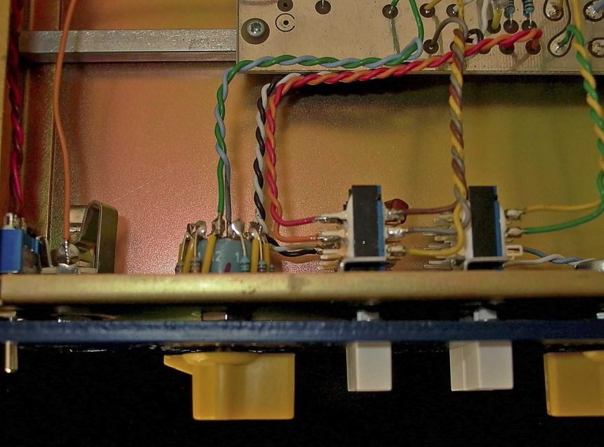 Sempre a riguardo della Magic Box è evidente la fattura di tipo Home-Made, pare che i transistor al Germanio posizionati nella scatola nera siano stati realizzati esclusivamente dalla “Neve” la quale, dal 1960, ha sempre sfornato prodotti di ottima qualità. La basetta del circuito presenta le piste argentate, tale filosofia produttiva risponde all’esigenza di evitare eventuali processi di ossidazione di piste, saldature e componenti; non abbiamo a che fare quindi col canonico processo anti-ossidazione realizzato laccando una pellicola trasparente su normali piste in rame, anche questa è una prova sincera di qualità senza compromessi. Si evidenziano poi due trasformatori, le cui funzioni sono, di esercitare il lavoro di adattatori di impendenza IN/OUT. Anche la basetta con i led e l’essenziale “vu-meter” sono realizzati rigorosamente a mano.