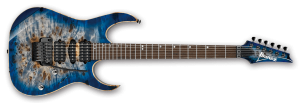“L’occhio vuole la sua parte” è un detto che a quanto pare in Giappone hanno capito benissimo: la chitarra ha un look veramente travolgente nella sua colorazione Cerulean blue burst, salta subito all’occhio e si sposa benissimo con le venature del top in pioppo, mentre la paletta in tinta con il logo Ibanez madreperlato fa la sua figura.