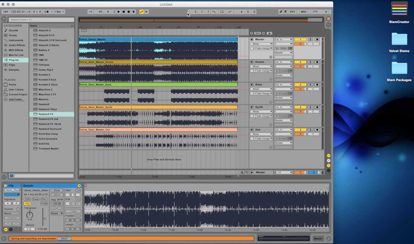 Ora, per dirla nella lingua madre “ognuno po’ fra chell’ che o pass p’a capa” (ognuno può fare quello che la testa gli suggerisce) specialmente in questo ambito in cui non è la scienza a dettare i canoni delle procedure di lavoro ma i microcosmi costituiti dalle varie abitudini legate al sound di un genere di musica o all’altro. Ma il problema evidente che si manifesta nella procedura suggerita da Native Instruments è che non solo le tracce stem risulteranno più compresse e sature, ma il loro equilibro di “volume” sarà sicuramente compromesso, e applicheremo uno stadio in più di limiting/compression, non previsto nel master originale. (Native Instruments specifica sul suo sito web, nella scheda relativa a stems, che non è stato ancora standardizzato alcun tipo di processo di mastering, Questo articolo non vuole essere alcun tipo di appunto al loro operato.)