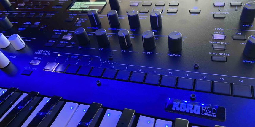 Il nuovo synth è ben assemblato, i materiali scelti sono perfettamente in linea con la fascia di prezzo dello strumento e, per contenere i costi, invece di usare chip dedicati la Korg ha scelto di usare un Raspberry Pi come unità di calcolo centrale. I controlli e i pulsanti sono di buona qualità e rispondono benissimo al tocco, il pannello superiore è metallico, la tastiera è di formato standard 3 ottave ma senza aftertouch e un po’ leggera (chiaramente non capiterà di suonarci Brahms e se dovesse accadere basterà usare una tastiera esterna), il display OLED piccolino ma ben leggibile (ormai li usano ovunque visto il prezzo molto conveniente) però io – volendo rimanere su display di grandezza standard – ne avrei messi altri 2 per gestire i vari parametri. L’alimentazione è fornita da un alimentatore esterno.