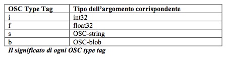 Ogni carattere dopo la virgola è chiamato OSC type tag string e rappresenta il “tipo” del