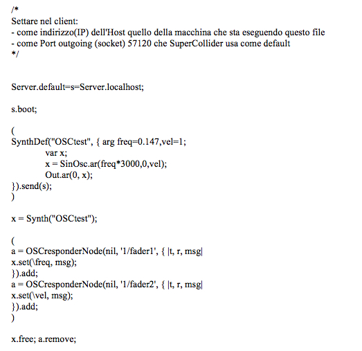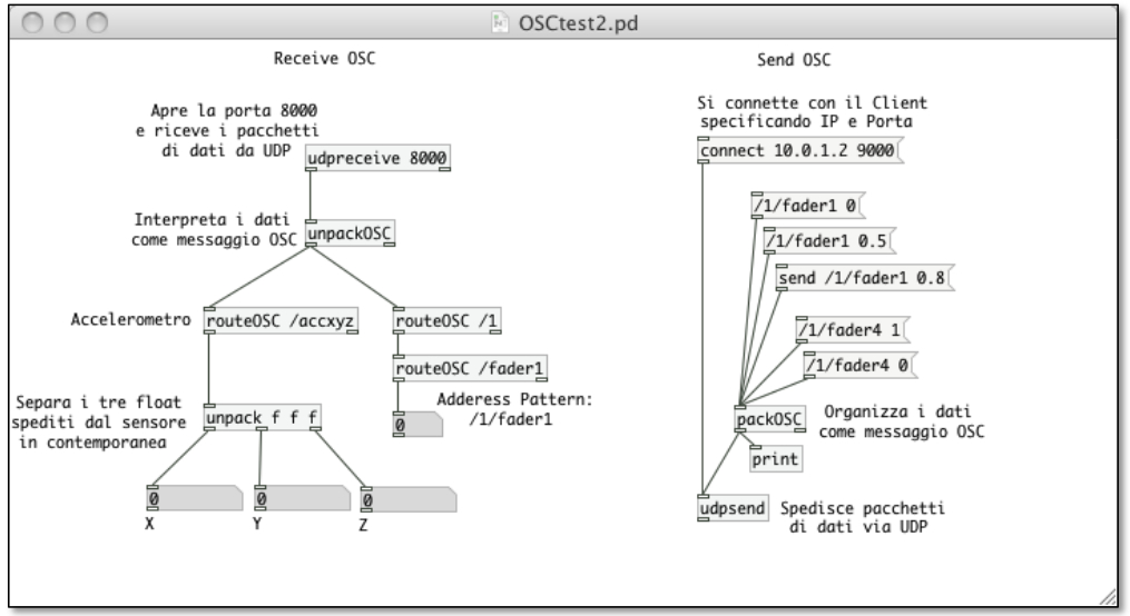 Nei due esempi successivi (anch’essi lato server) si mandano e si ricevono messaggi OSC che: