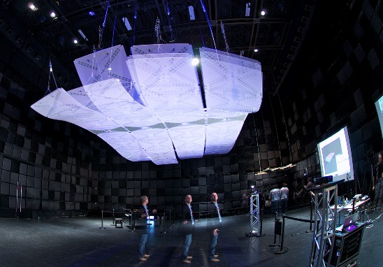 schermi elettronici. La sonificazione avviene attraverso un sistema di 10 altoparlanti. Una