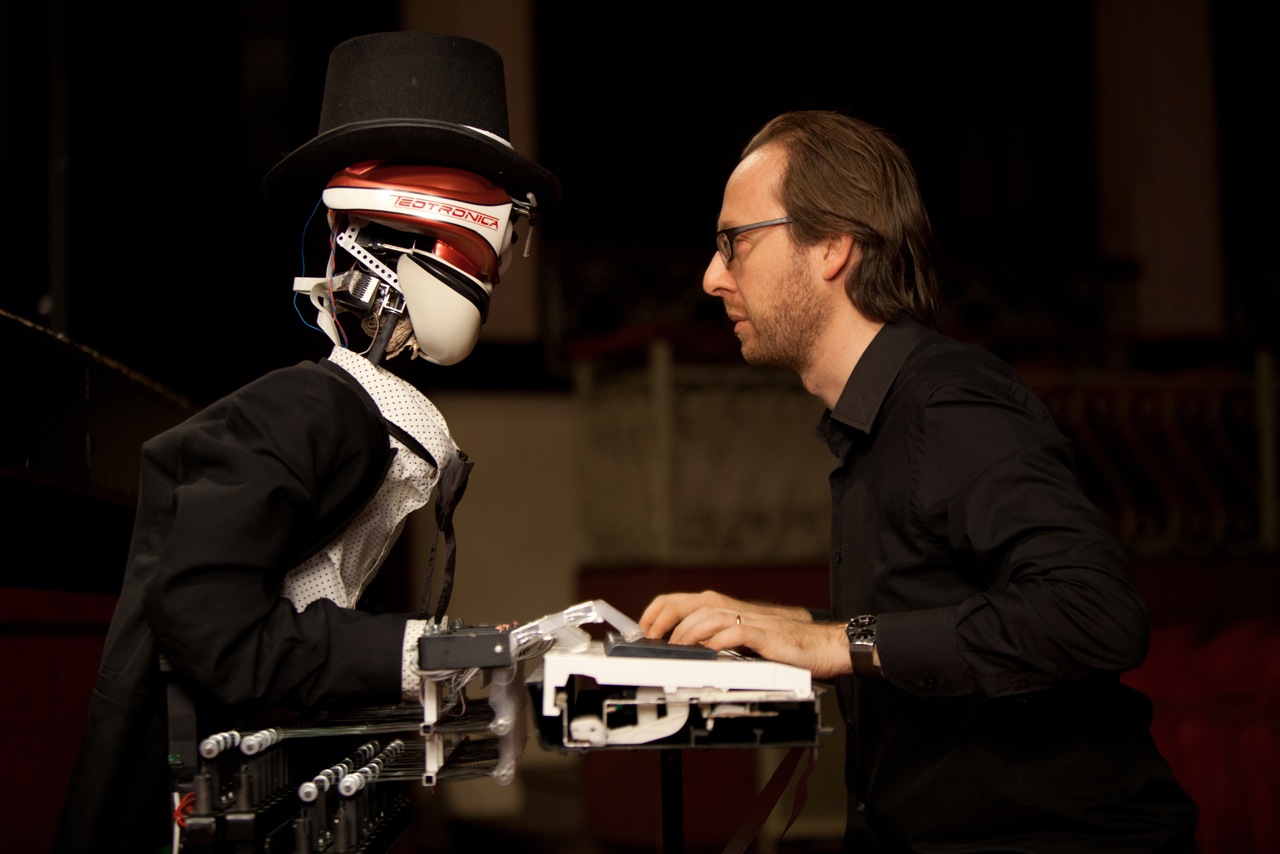 Il dibattito sul ruolo dell’interprete è aperto da molti decenni, e si è spesso discusso su quanto un interprete possa spingersi verso un’interpretazione personale-creativa-arbitraria della partitura. Questo concerto-sfida è finalizzato a svecchiare il recital pianistico e a dare al pubblico maggiori stimoli per un ascolto più consapevole, critico e partecipato. Il programma è diviso in tre parti. Nella prima, la sfida vera e propria, Roberto Prosseda e il robot si alterneranno al pianoforte, eseguendo gli stessi brani. Il robot suonerà in modo “robotico”, riproducendo letteralmente la partitura, così da evidenziare le differenze tra una mera riproduzione e una più libera interpretazione. La seconda parte vedrà il robot impegnato ad incarnare interpretazioni di grandi pianisti del passato, (Rachmaninoff, Busoni,Hoffman), riproducendone le incisioni su rullo. Il dibattito estetico quindi si sposterà sulla storia dellʼinterpretazione pianistica, offrendo ascolti di rarissima reperibilità e spunti critici per considerare lʼevoluzione dellʼinterpretazione pianistica negli ultimi 100 anni. Nella terza ed ultima parte il robot eseguirà musiche originali per player-piano, come lʼEtude per pianola di Strawinsky, alcuni studi di Conlon Nancarrow e due brani scritti appositamente per Teo Tronico da Nicola Campogrande e Stefano Ianne.