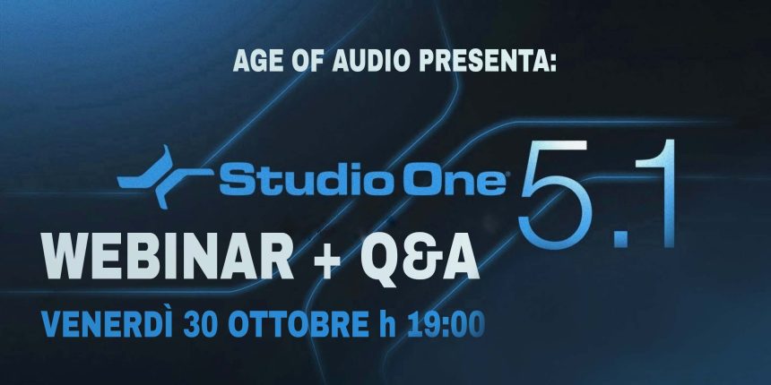 Venerdì 30 ottobre alle ore 19:00 in esclusiva sul canale Youtube di Age of Audio ed in collaborazione con JGR Studios,MidiMusic e Liz Martin, il primo webinar totalmente gratuito e accessibile a tutti su Studio One 5.1!