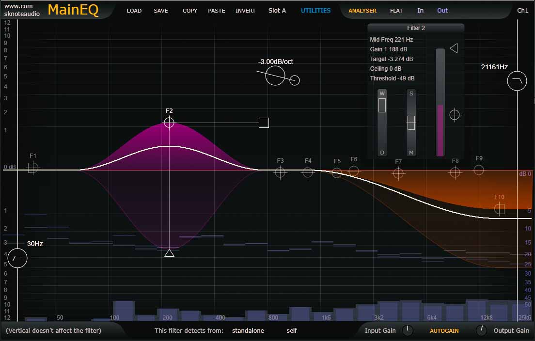 La detection del singolo filtro può essere standalone, e può dipendere dal proprio filtro (self), da tutto lo spettro (full-range), da tutto quello che si trova al di fuori del filtro scelto (rest), oppure da uno degli altri filtri interni disponibili (ed esempio, la punta del rullante tiene sotto controllo, oppure espande, la parte bassa in cui si trova la fondamentale).